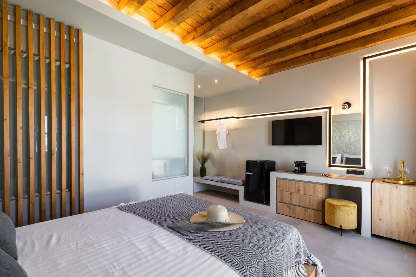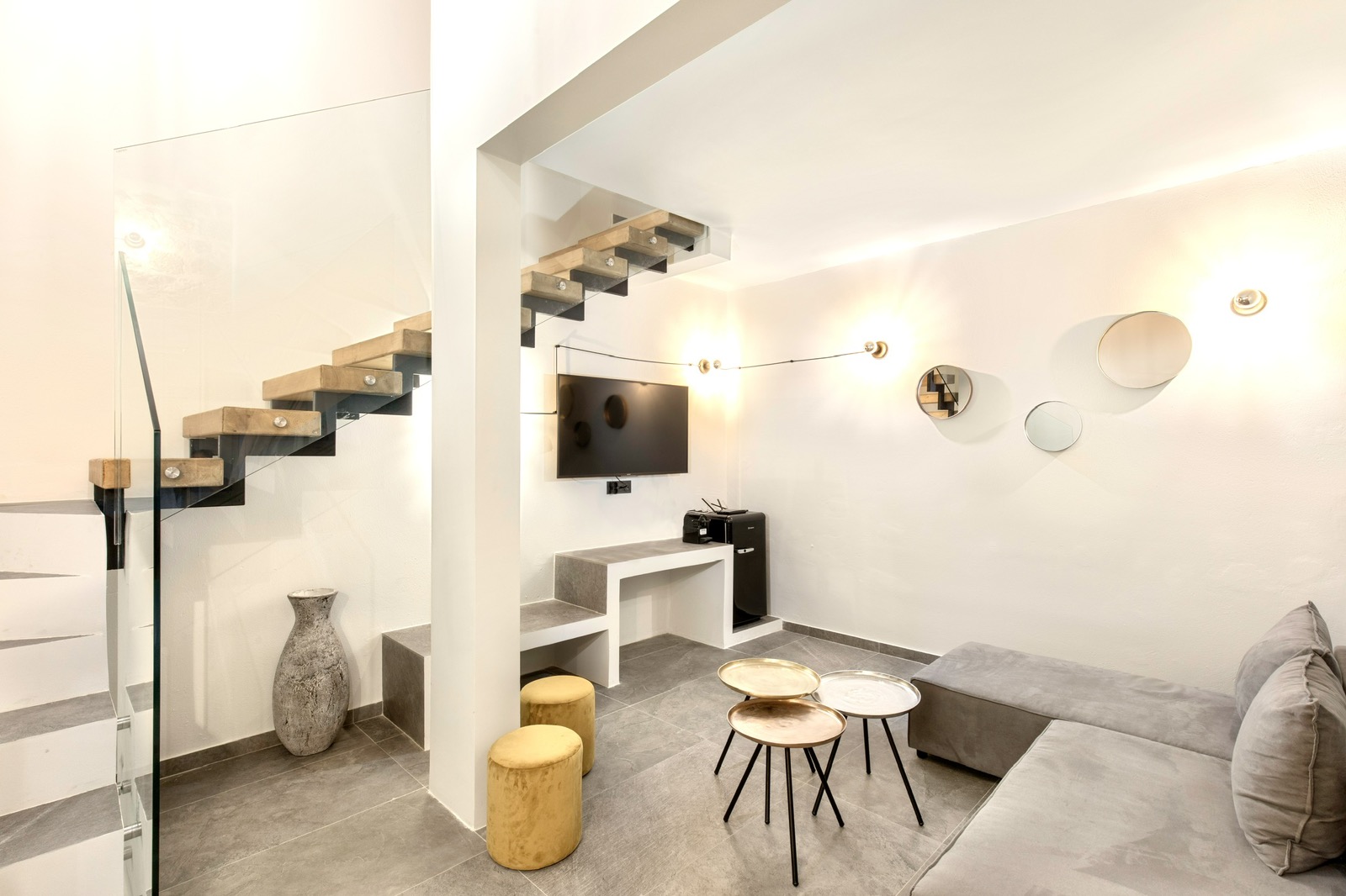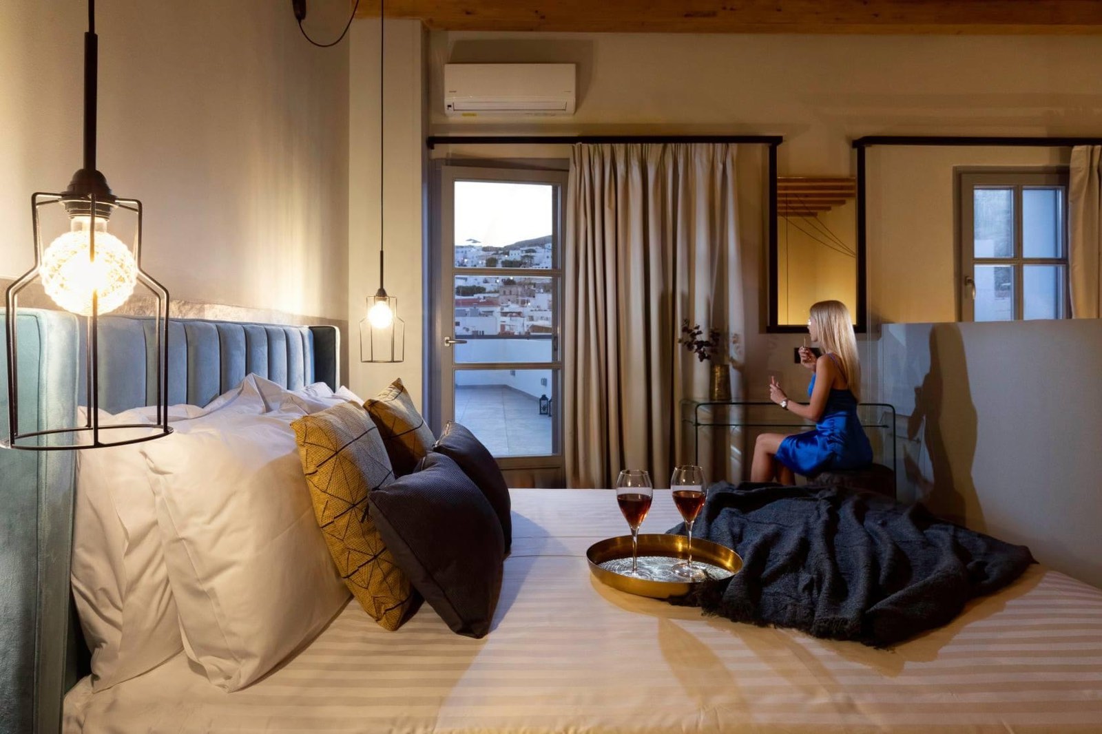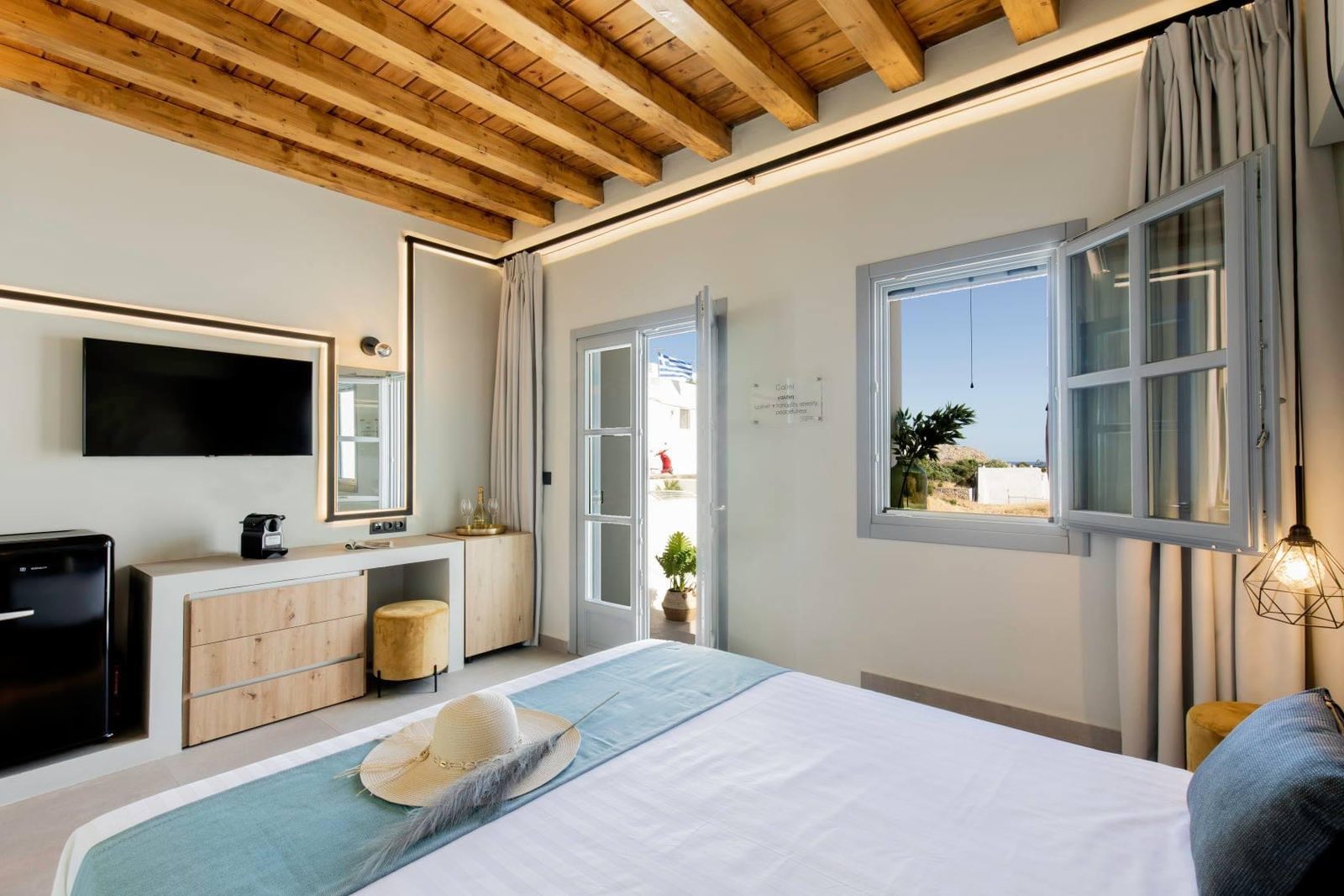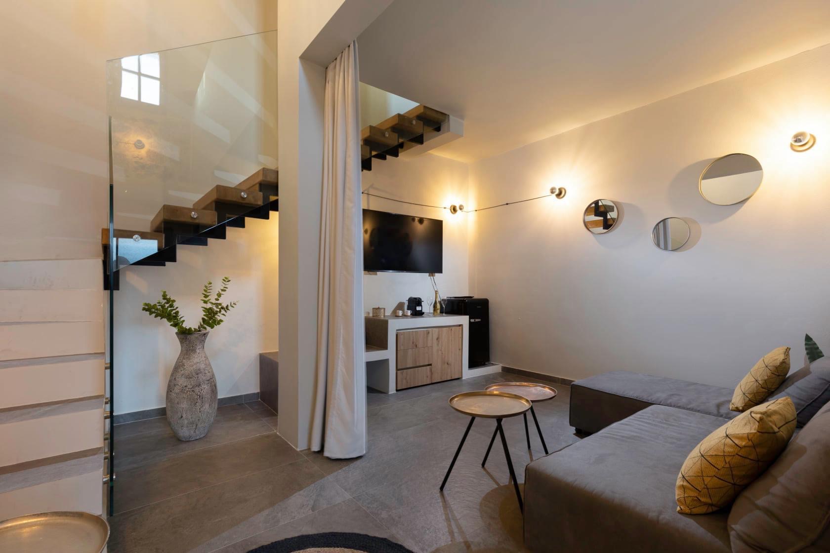 Thea is our grand suite , it is a 70sqm two story suite , it can sleep four people and has large terrace with breathtaking 360 views !
