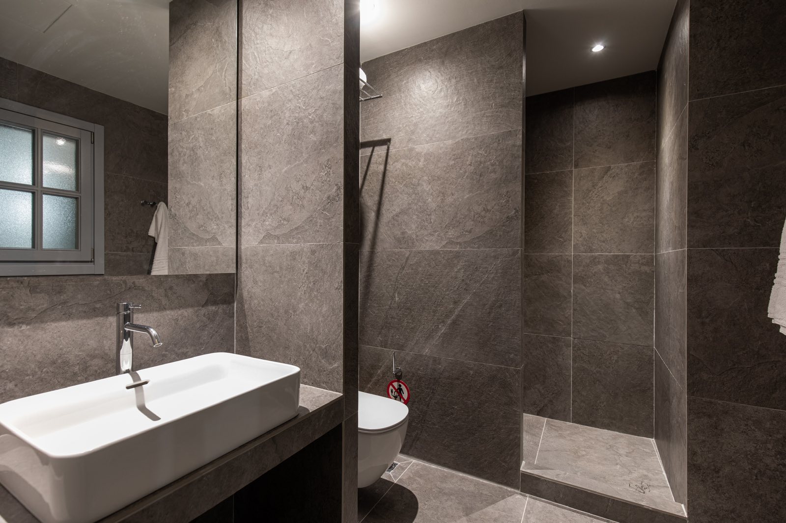 It is equipped with a kitchenette , a washing machine and a large spa-like bathroom for the ultimate relaxation.