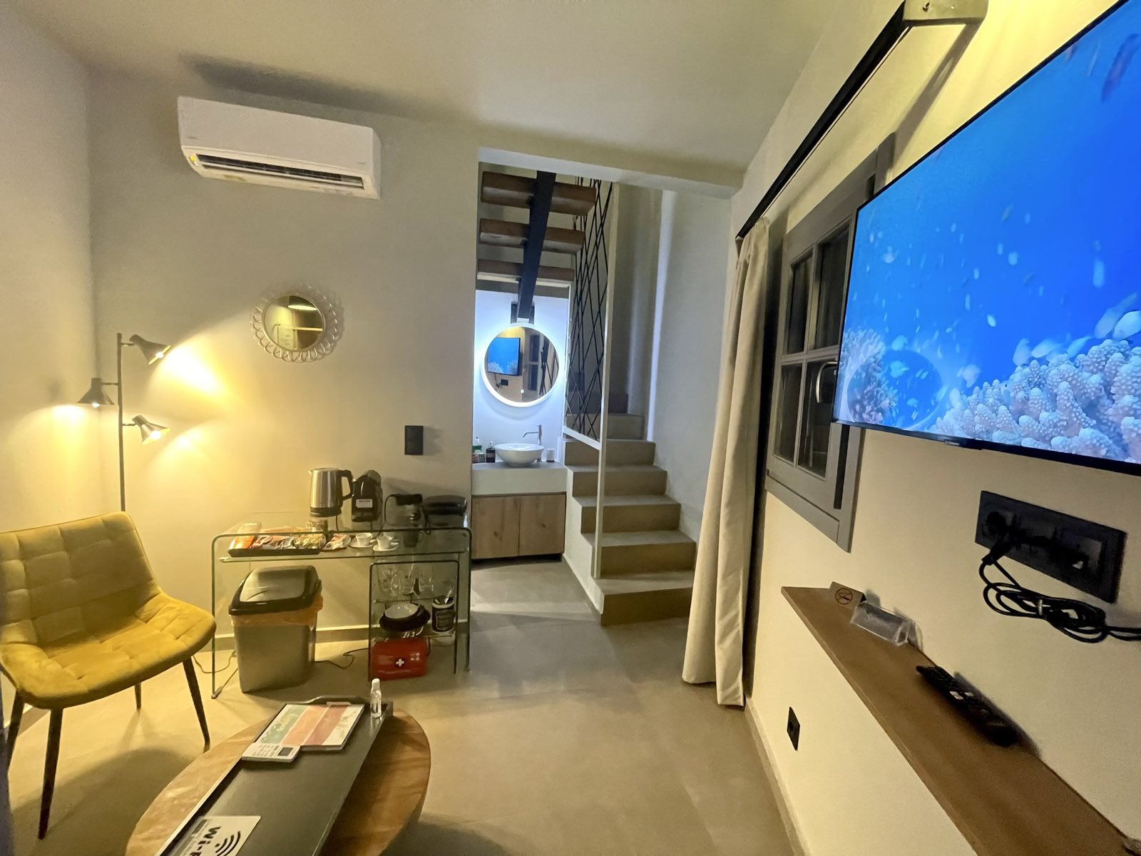 Stergo is a two story suite with a balcony so you can enjoy the unobstructed view of St. Paul’s bay. It is fully equipped with everything you might need such as a kettle , Nespresso coffee machine , iron , 2 TVs, mini fridge , free WiFi and Netflix.